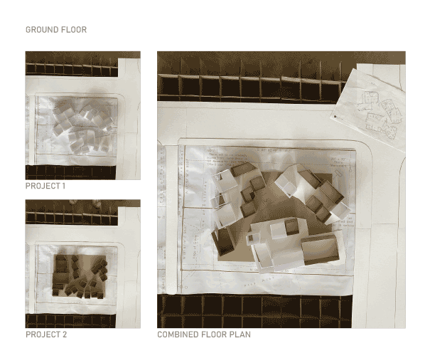 Once the final layout was established from the initial partner work, a cleaner, better constructed model was built out of chipboard and matboard. The model roughly represented each of the partners’ final project. Due to the partner work splitting back into individual projects, this model is meant to look similar to the rendered project above.