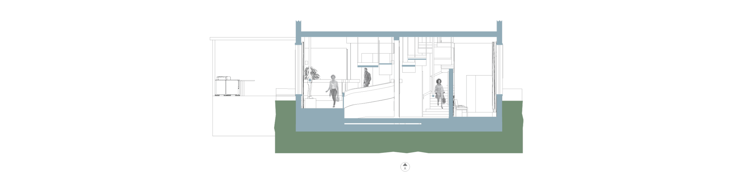 Nature’s influence is present in many aspects of life, whether it’s obvious or not, because nature is full of paths, both physically and visually, creating a sense of directionality, guidance, and even hierarchy. This feeling of warmth and relaxation is also a part of how nature guides people on an emotional level. That is the goal of this space: to provide a calm, warm feeling boosted by the comfort in a natural flow. This feeling would be supported by the nature-like features inhabiting the space, such as the color scheme.