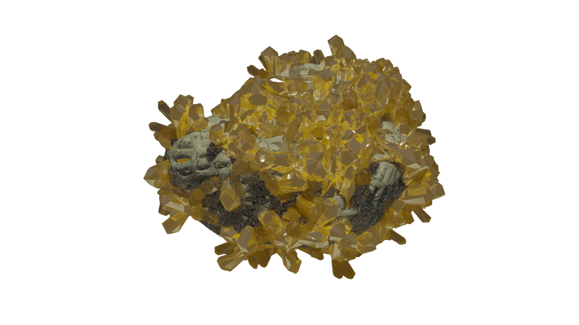 The research aspect of this project began with deconstructing and reconstructing core elements of a chosen mineral, which in this case is gold quartz. During the reconstruction process, other elements of digital manipulation were utilized to further experiment with this mineral’s expression.