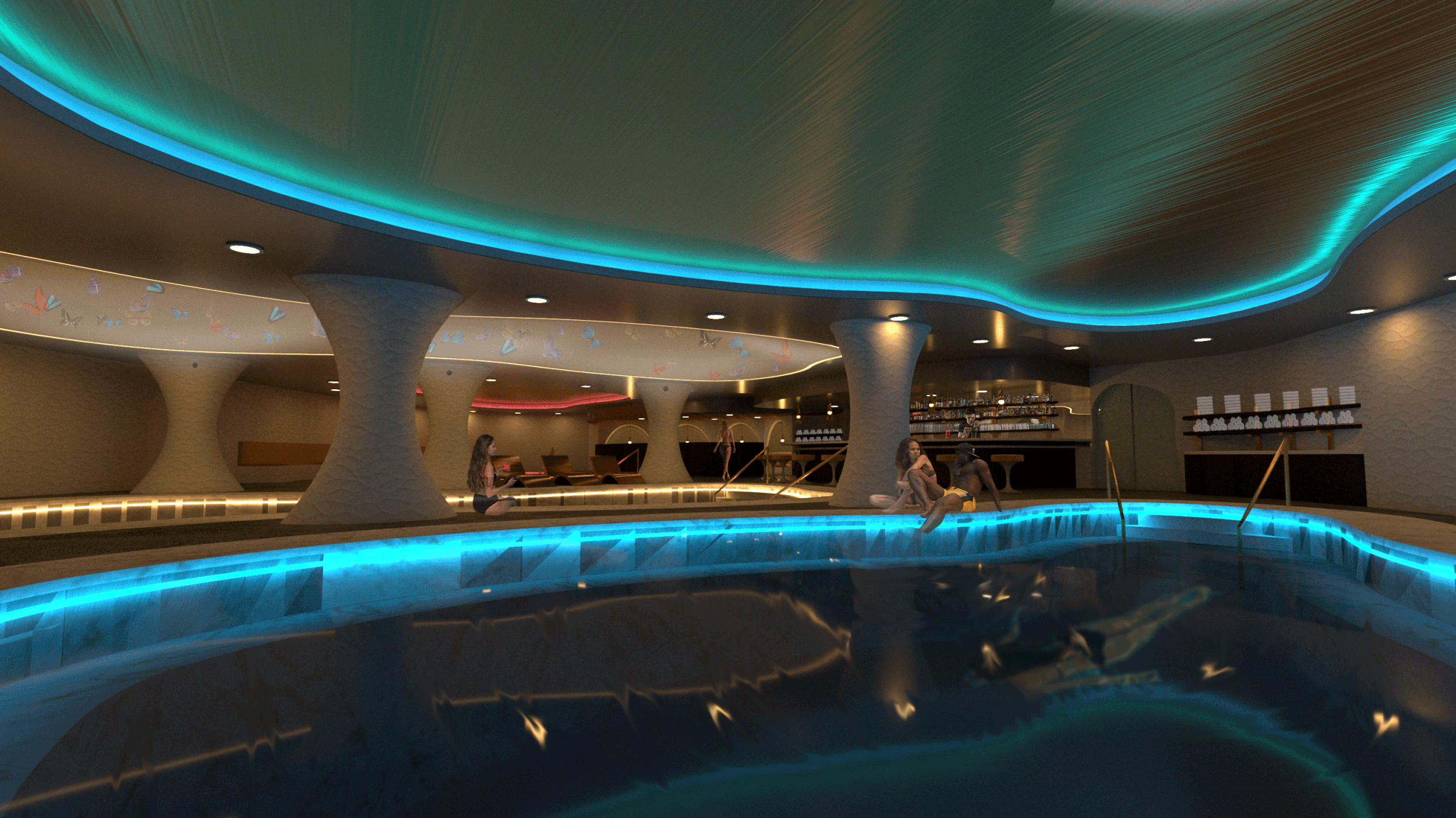 The Southern California region is known for the mining of precious materials. One of the commonly found resources in the area is gold quartz. As this material is perceived to be beautiful and desirable, the spa made in its image is meant to match that energy. This project reflects the luxury and high-status gold quartz represents while being located in a similar area to where it is found. The scope of this project is one space in the spa: the temperature-regulated pools. These pools provide an unforgettable experience at the peak of modern luxury and comfort.